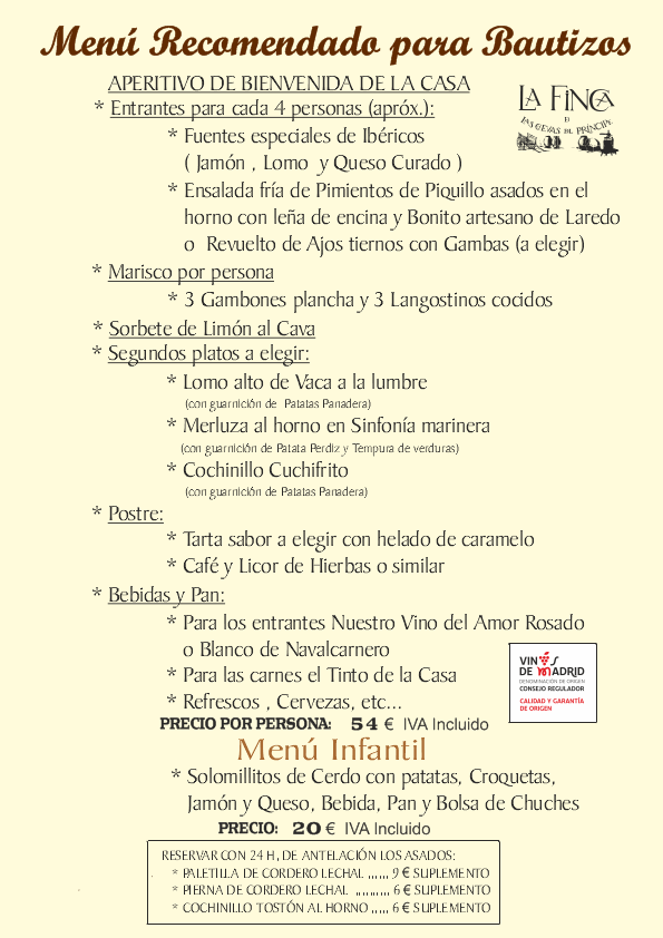 Aqui tienes los MENÚS DE RESTAURANTE de La Finca